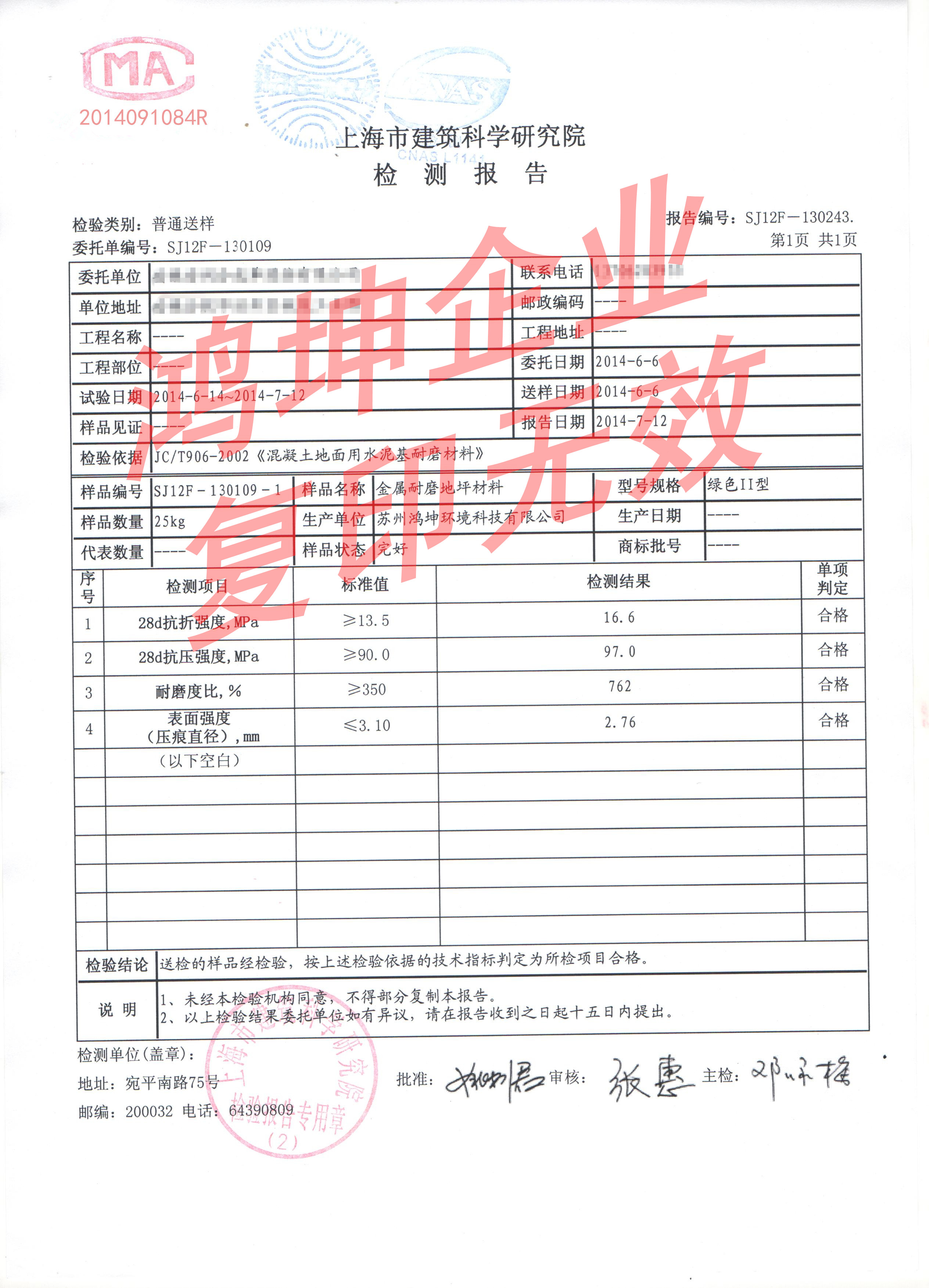 以下是鴻坤企業耐磨地坪的檢測報告,可了解詳細產品性能。